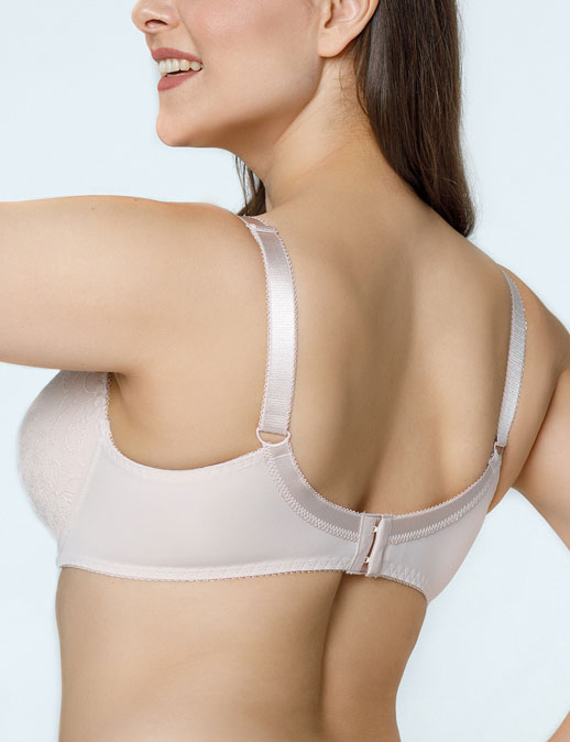 Бюстгальтер „Semi Soft“ на каркасе, с вытачкой по чашке диагональной формы, которая обеспечит более надежную поддержку груди, придавая округлости формам. Чашки закрытые, глубокие, превосходно фиксируют грудь. Нижняя часть продублирована ламинатом из поролона и хлопка, это обеспечивает поддержку груди снизу и сбоку. Верхняя часть - кружевная.