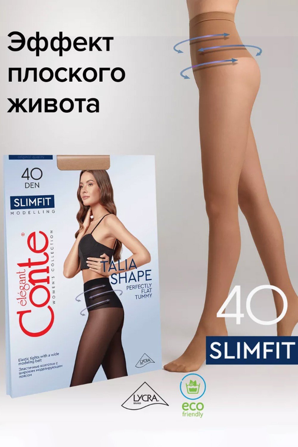 Шелковистые колготки с широким утягивающими поясом Slimfit 40 моделируют фигуру, визуально уменьшая объём талии и создавая эффект плоского живота.