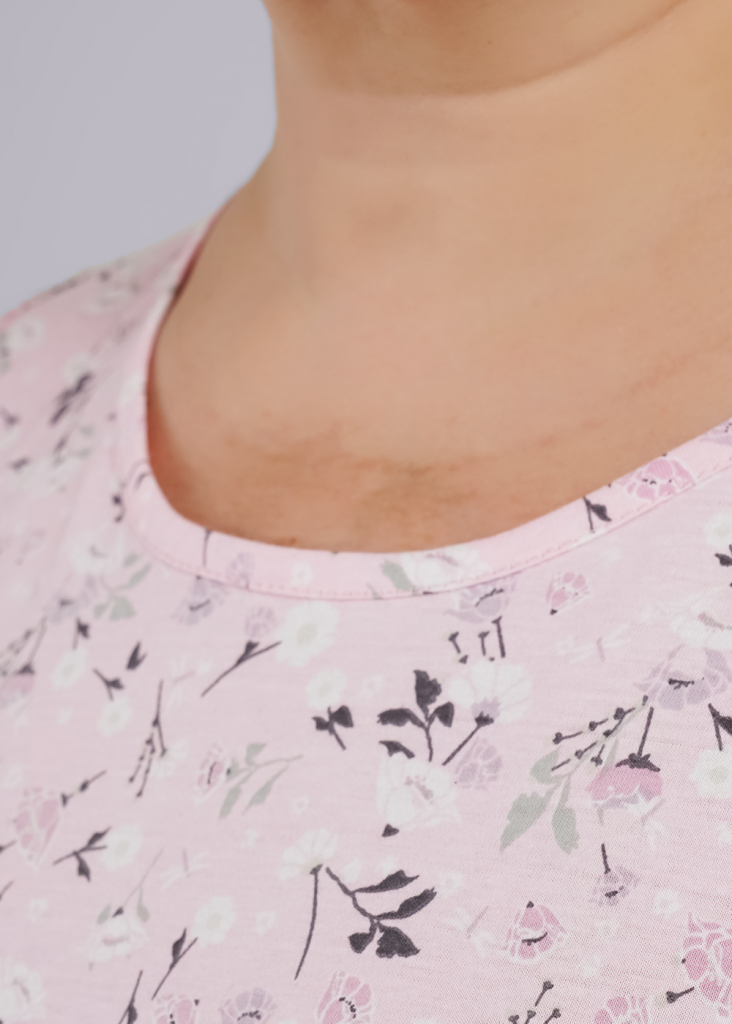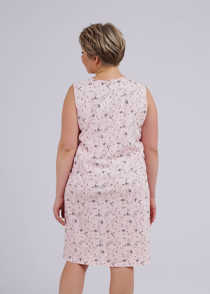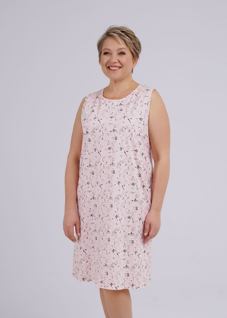 Ткань из высококачественного хлопка гипоаллергенна, приятна на ощупь и позволяет телу дышать. Сорочка с круглым вырезом горловины и широкой бретелью выполнена из полотна в растительную набивку.